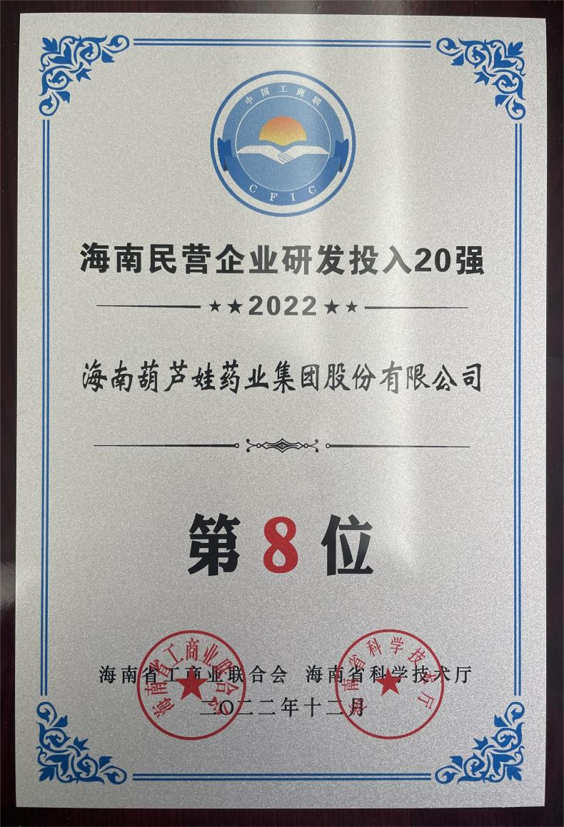 12月23日,2022海南民营企业50强和研发投入20强发布会在海口举行。会上发布了“2022海南民营企业50强”“2022海南民营企业研发投入20强”榜单和分析报告。星空真人药业再次荣登两榜,在海南民营企业50强榜单中位列第25位,较去年上升8位,这也是公司连续三年登榜;在海南民营企业研发投入20强中位列第8位,较去年上升7位。