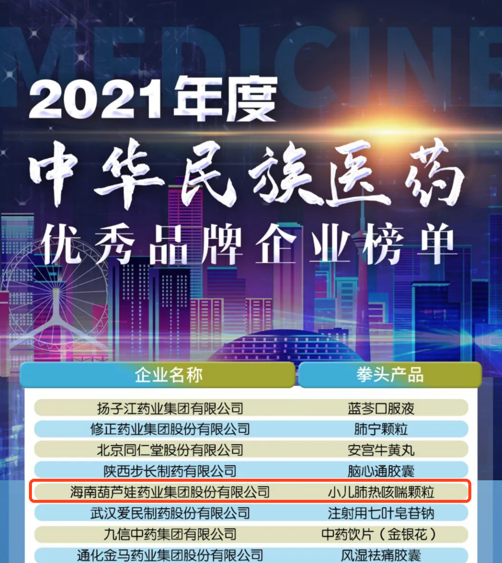12月29日,全国工商联医药业商会发布了“2021年度中华民族医药优秀品牌企业榜单”,星空真人药业集团凭借黄金单品小儿肺热咳喘颗粒(4克)实力登榜。