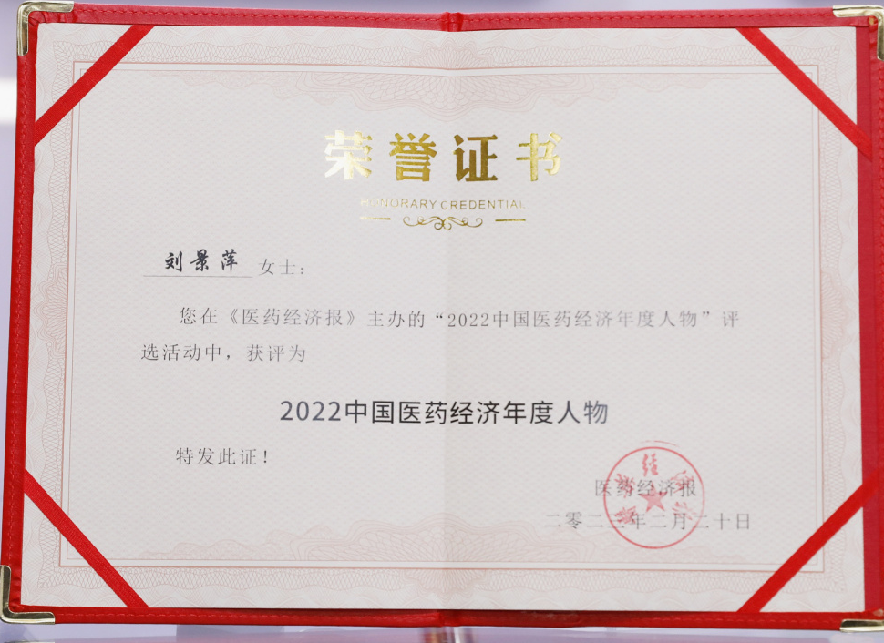 星空真人药业集团董事长刘景萍当选“2022中国医药经济年度人物”