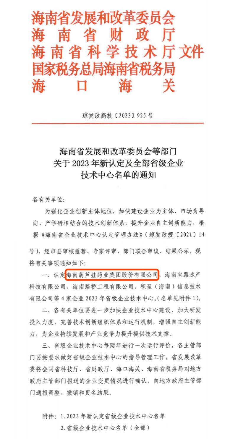 近日,海南省发改委等多部门联合公布了《关于2023年新认定及全部省级企业技术中心名单的通知》,其中,海南星空真人药业集团股份有限公司成功通过评审,被认定为省级企业技术中心,是本次获批的4家企业之一。